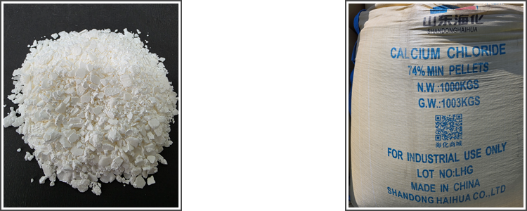 | 제품 | 염화칼슘은 칼슘과 염소의 화합물로 백색결정의 편상이며 일반적으로 수화물 상태로 존재하고, 30℃ 이하에서는 6수염. 30~45℃ 에서는 4수염, 그이상에서는 2수염 이상으로 조해성 고체이다. |